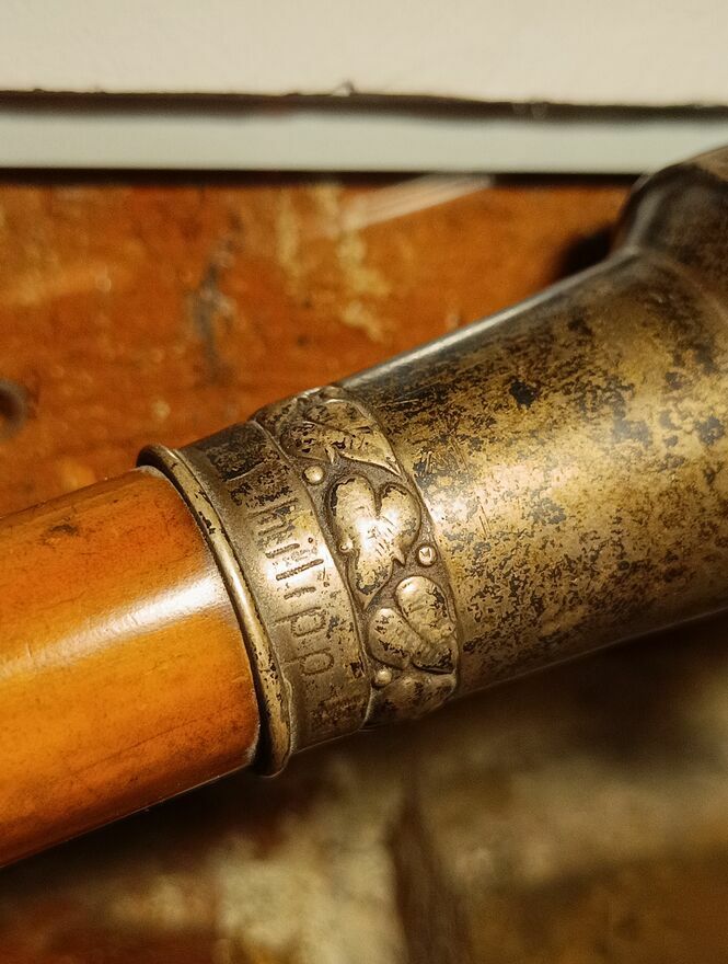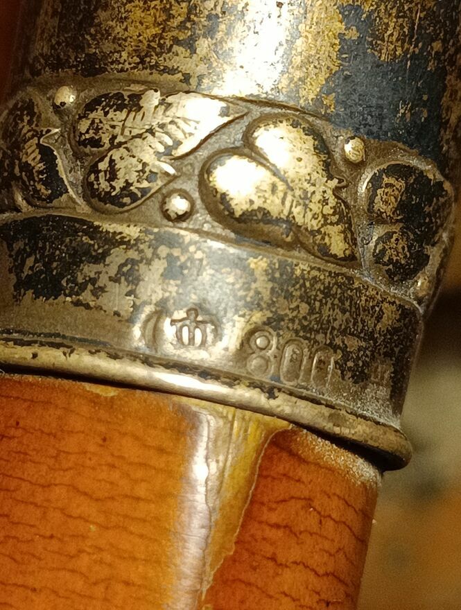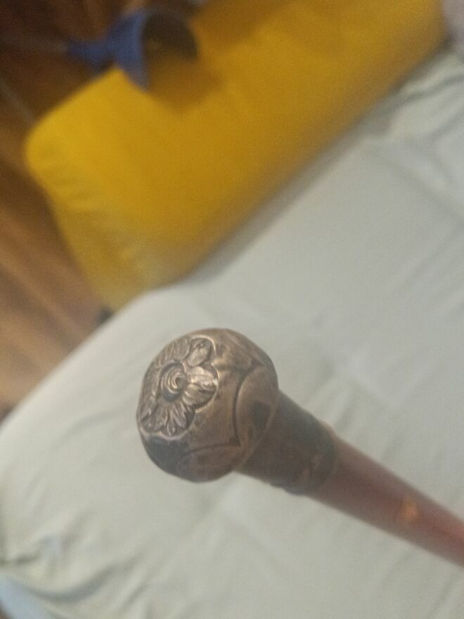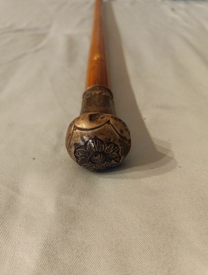 Laska do podpierania ,srebrna rękojeść w kształcie kuli grawerowana na kształt Róży o próbie 800 i pod rękojeścią znajduje się mała ozdobna złota Róża,taka jak na rękojeści .rękojeść jest trochę powgniatana lecz zachowana w całkiem dobrym stanie jako całość obok próby srebra jest napis "PHILIPP KRUG" zainteresowanych proszę o kontaktSprawdź zainteresowanie tym ogłoszeniem